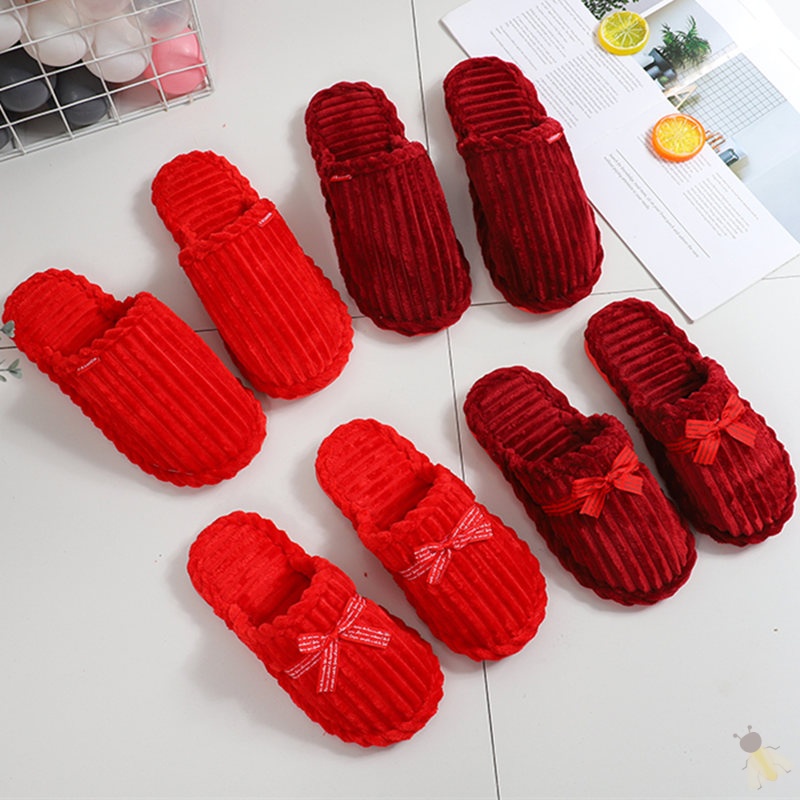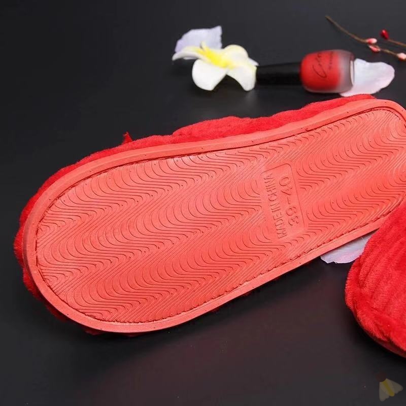 Wedding Slippers A Pair of Euro-lovers Heqing this year Autumn Winter Transit Red Hairy Cotton Slippers At Home Non-slip