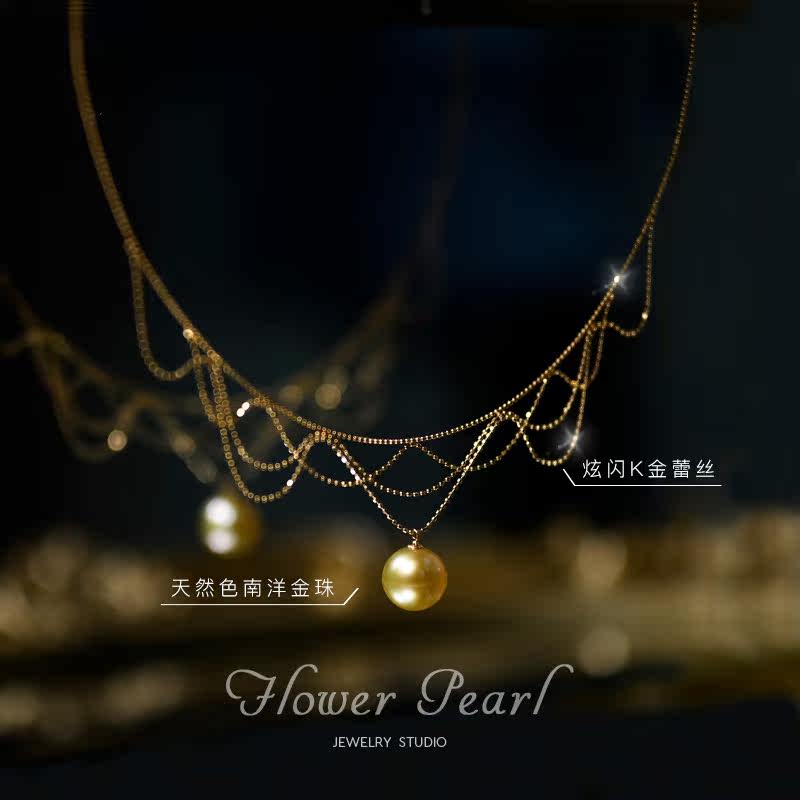 Walk through the dream Aurora Nanyang gold pearl natural sea water pearl 18K gold Japanese lace item ring
