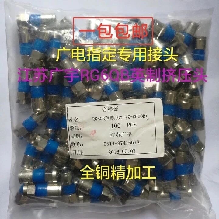 Wide-electric special RG6 pure copper F head 75-5 extrusion head F head cable set-top box dispenser connector plug