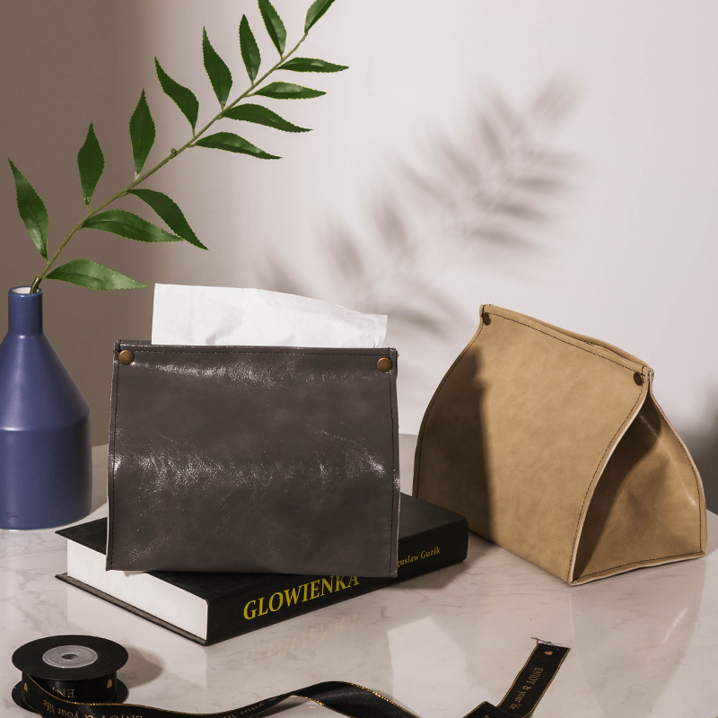 Light luxury rivet leather draw paper towel bag coffee table paper towel pump waterproof leather paper towel set solid color simple leather tissue box