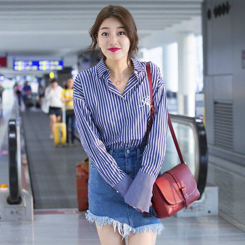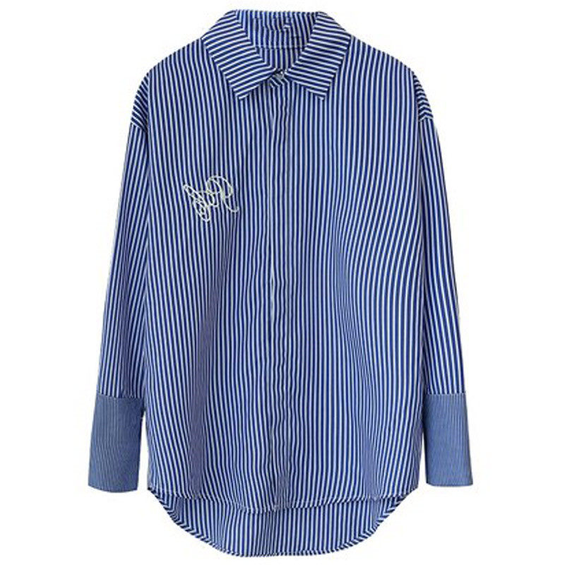 Star same shirt woman 2022 Autumn fit new Korean version easy to hit bottom vertical stripe chic shirt blouses woman