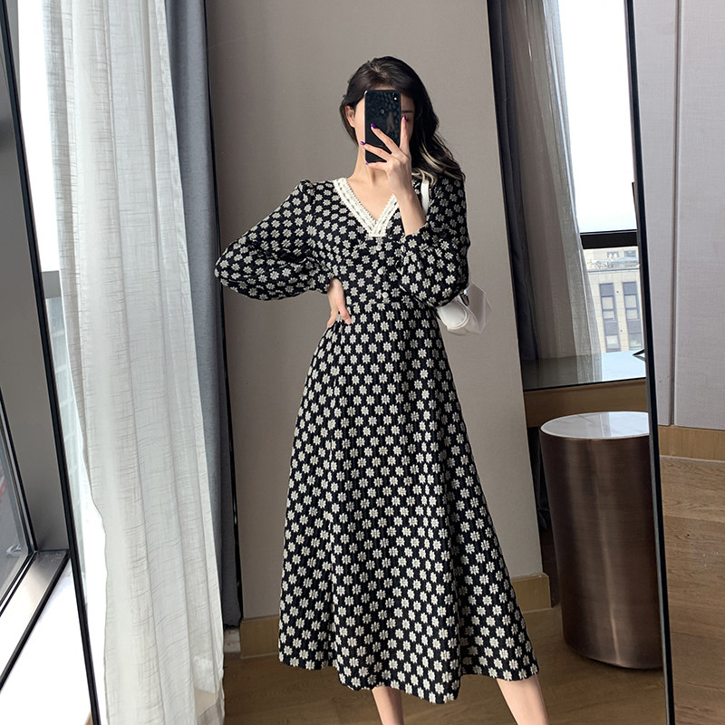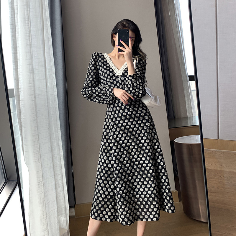 FT GUOGE fragraged women 2022 spring loaded with new bubble sleeves French style retro light ripened with knee-long skirt