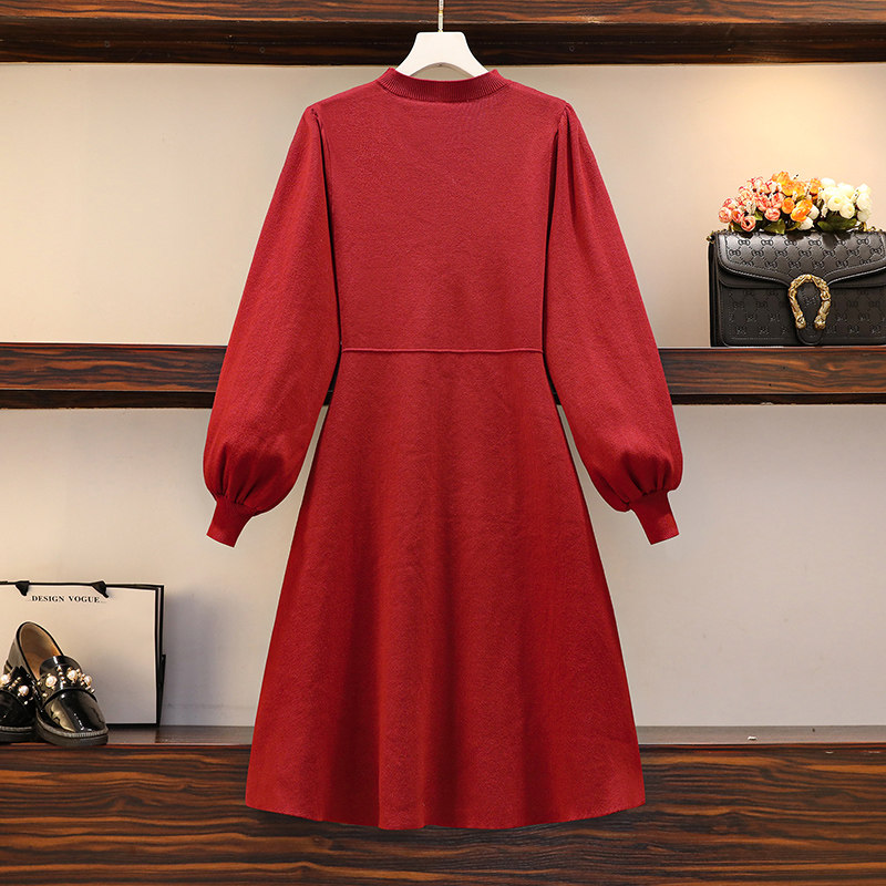 Maternity wear autumn and winter dress dress 2022 new large size red new year spring and autumn mid-length sweater skirt