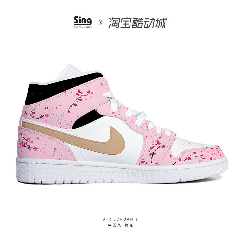 nike nike AJ1 airjordan1 national style plum blossom middle and high tube men's and women's basketball shoes student custom DIY