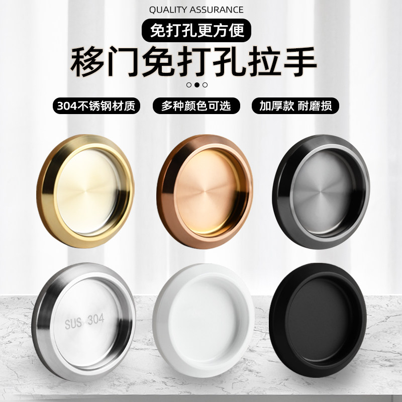 Solid titanium mobile door small handle concealed with non-stiletto stainless steel round hand buckle shower room push-pull glass door handle
