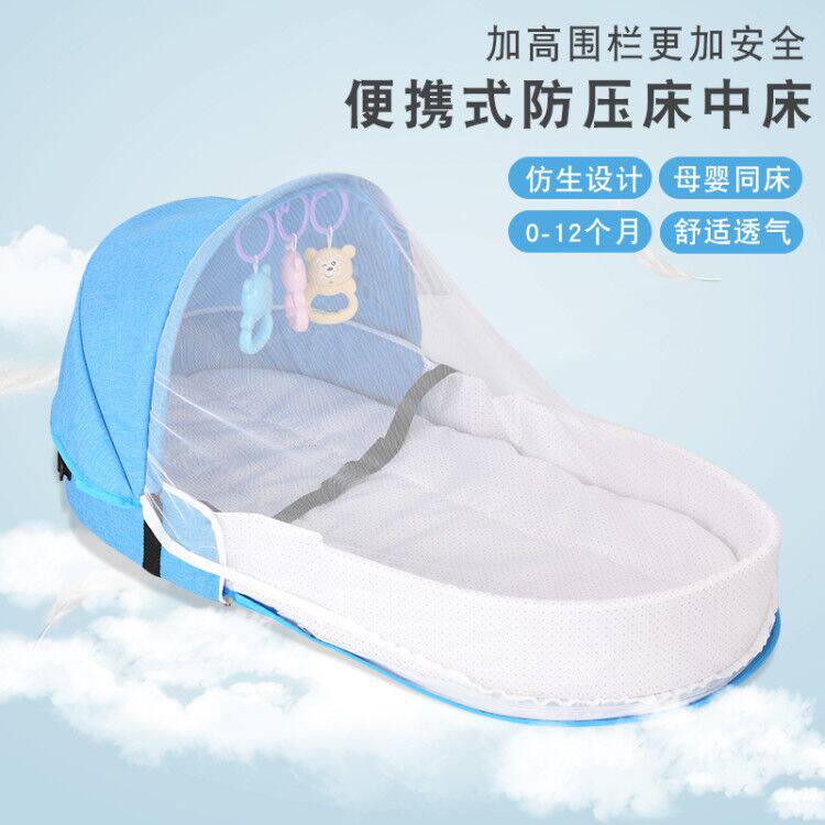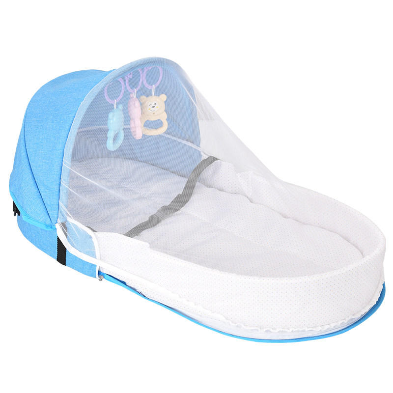 A folding game bed with mosquito nets can be folded