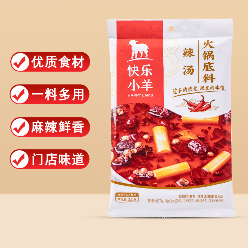 Happy Lamb Hot Pot Base Spicy Soup 235g*3 Bags Classic Cumin Flavor Household Boiled Meat Slices Powdery Skewers