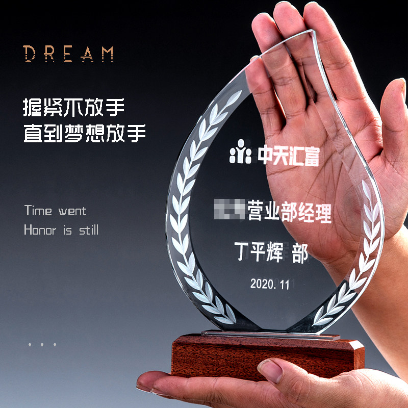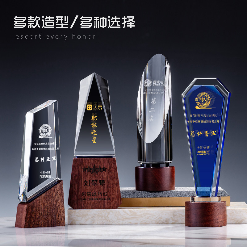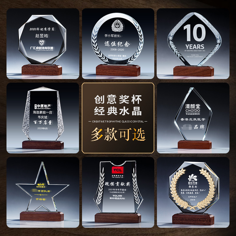 Crystal Solid Wood Trophy Custom Creativity Tailor Made School Annual Meeting Employees Award Souvenirs Honor Competition Medals