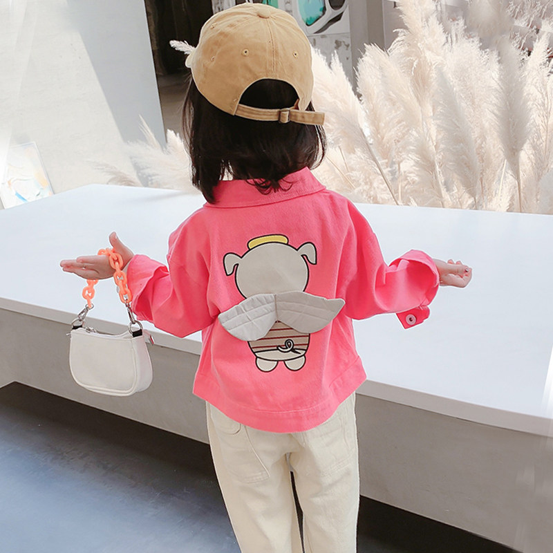 Girls spring coat 2021 new foreign school children's jacket cartoon casual wild baby spring and autumn denim jacket