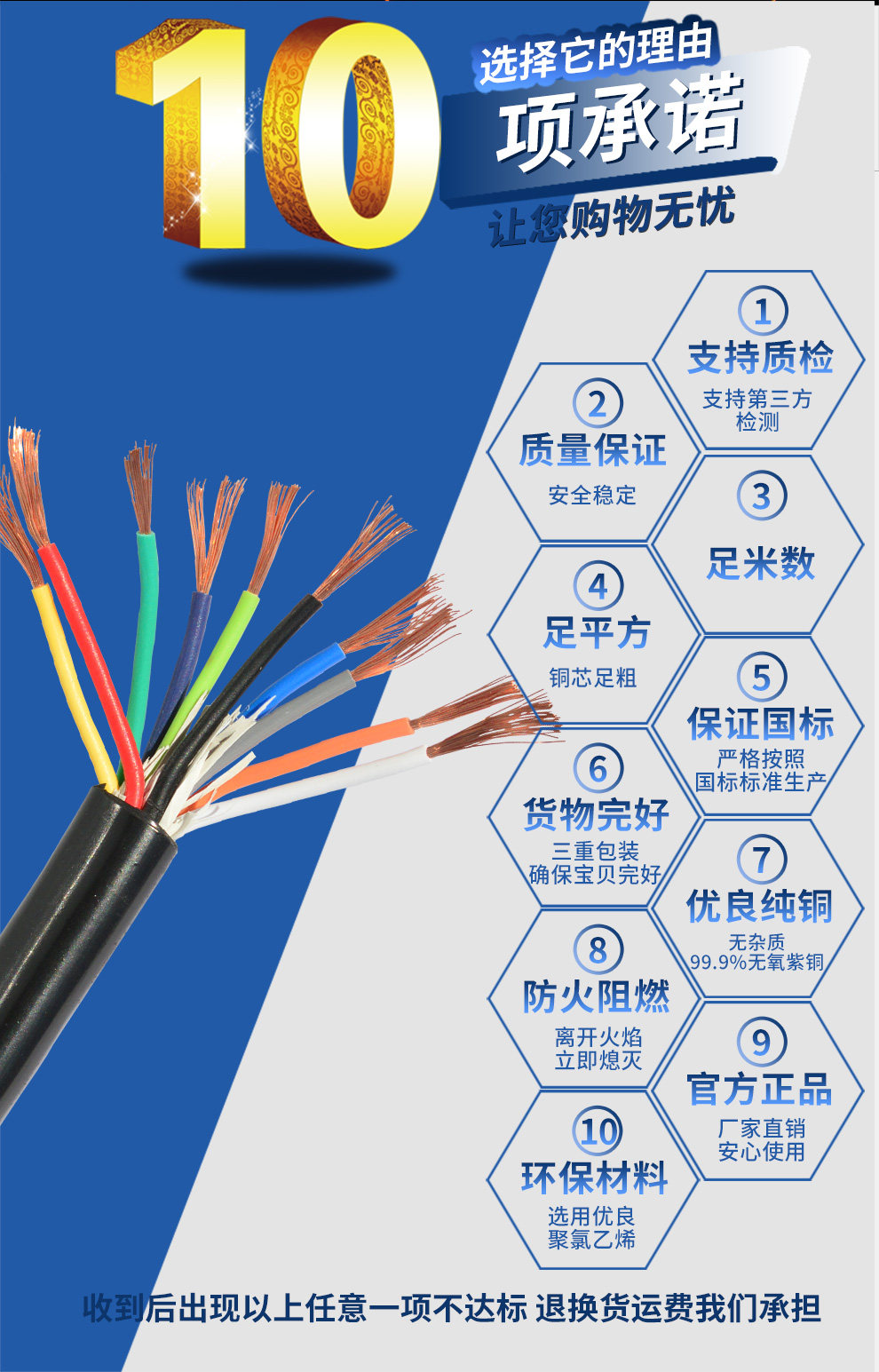GB pure copper RVV cable 2 3 4 5 6 core power signal control sheath line 0 2 0 3 0 5 square