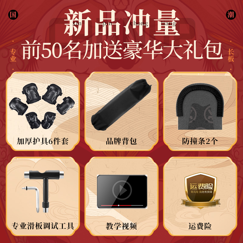Official fake one-to-four spot Lifeng professional long board (Guochao series-flower Mulan) hollowed-out black sand professional long board (national tide series-blue shark) hollowed-out black sand professional long board (Guochao