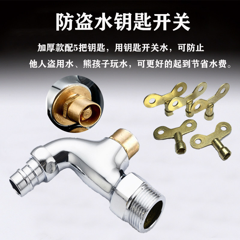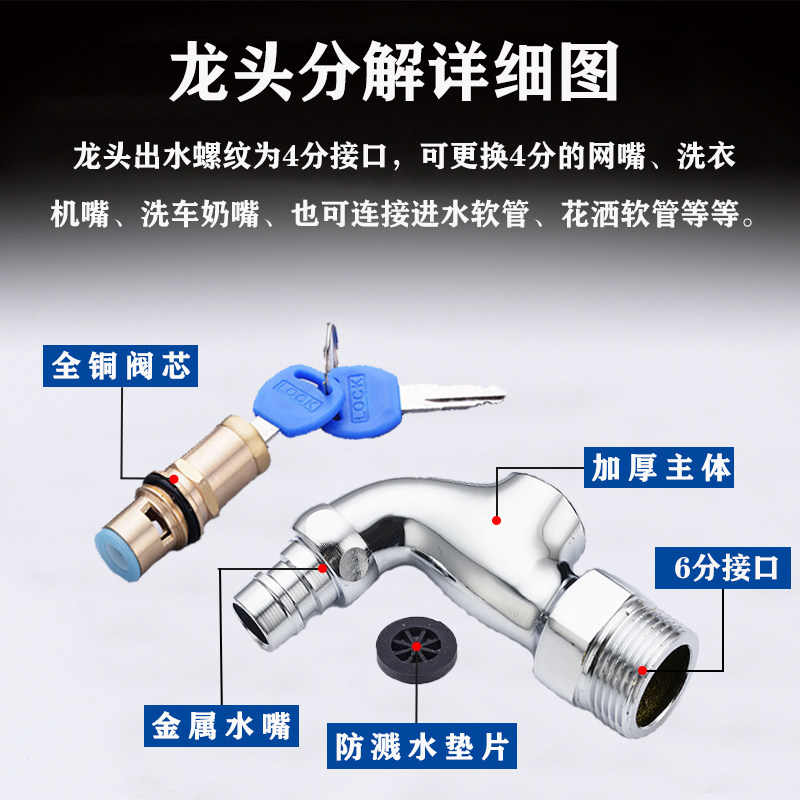 Anti-freeze 6 points with lock tap outdoor full copper household washing machine copper core stainless steel 304 key outdoor tap