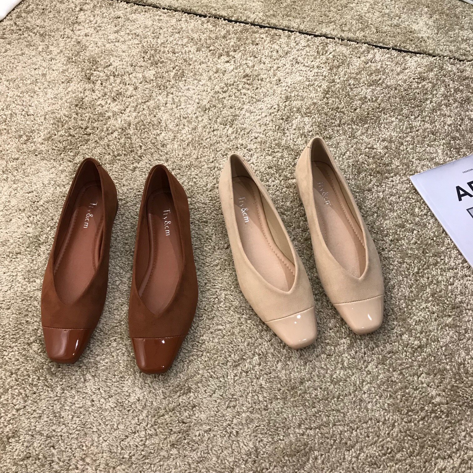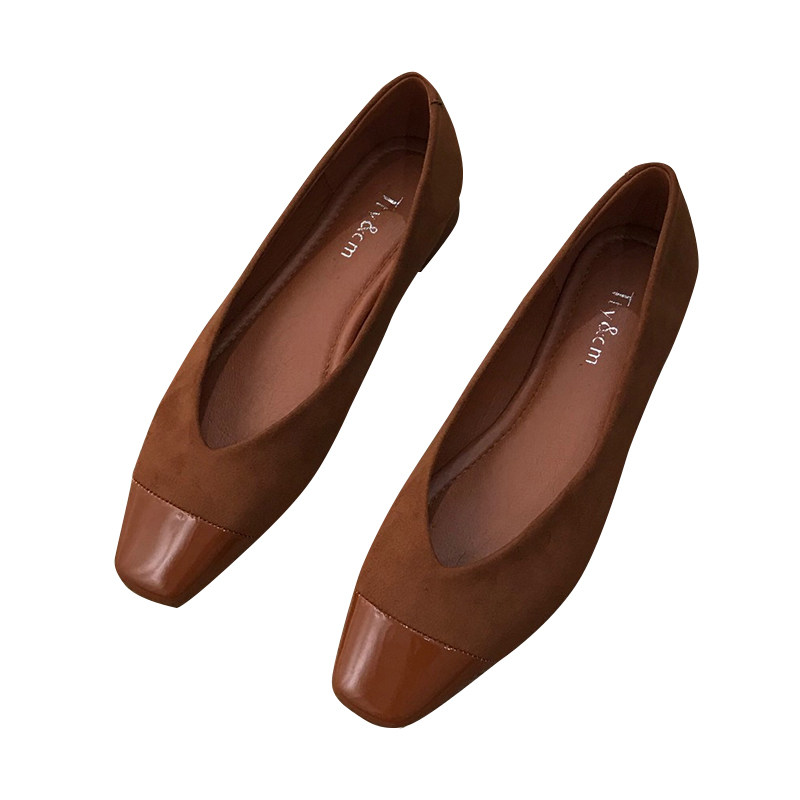 ITSK Shoes Women's Single Shoe Square Head Light Mouth Retro Coarse Heel Low Heel Soft Bottom Women's Shoe Bean Shoes