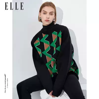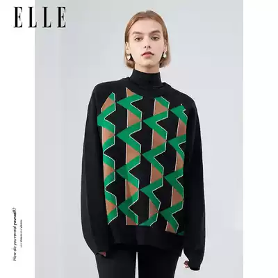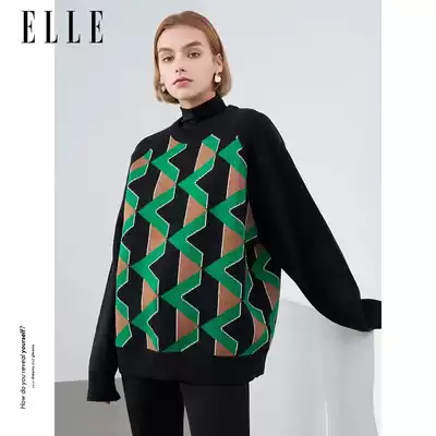 ELLE (recommended by the designer) winter New irregular geometric map wild color triangle jacquard sweater women