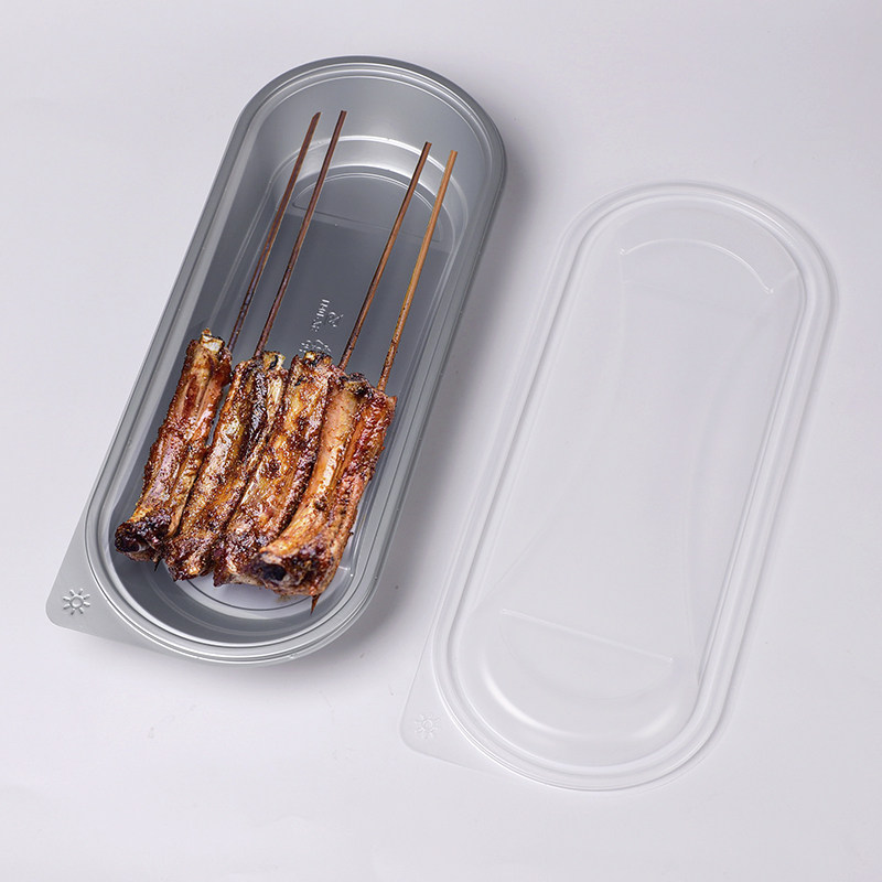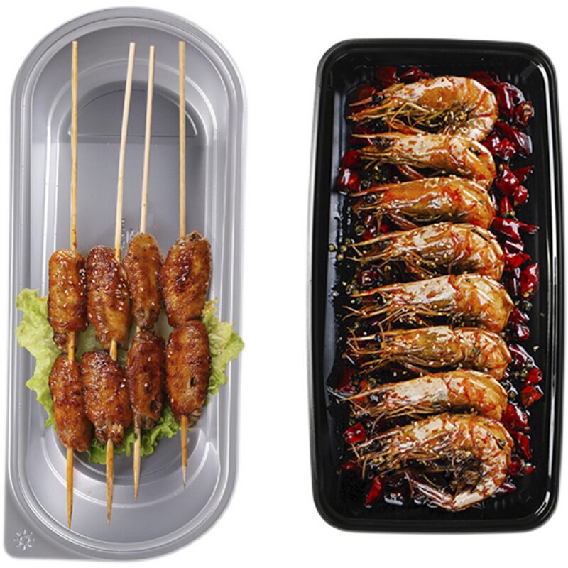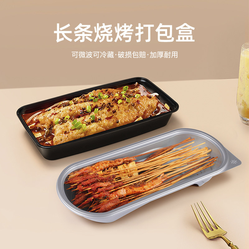 Horn flower disposable rectangular grilled fish case oversized Barbecue Packaging Box Black Out of Barbecue String Meal Kit
