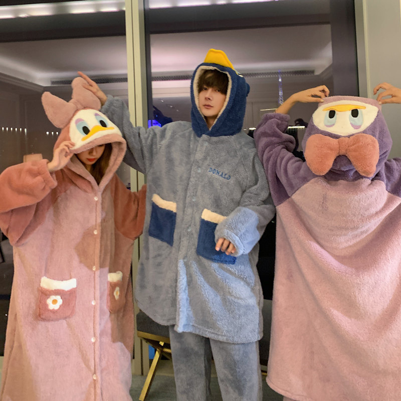 Pink Single Sleeping Robe Purple long sleeping robe pink long sleeping robe pants purple long sleeping robe pants blue pyjamas pants thickened clip cotton powder pink