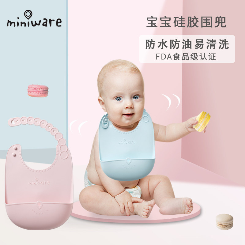 American miniware baby eating bib saliva bib children's baby silicone eating bib waterproof and anti-dirty artifact
