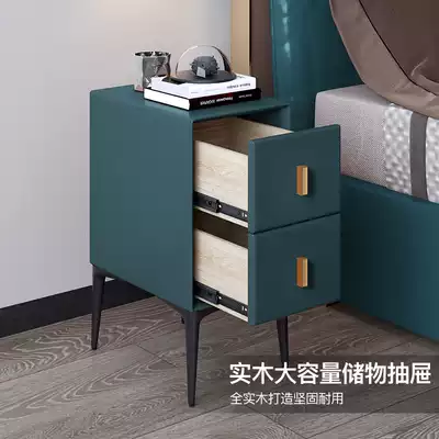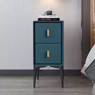 Nordic ultra-narrow leather bed cabinet Modern simple household bedroom light luxury mini small cabinet Solid wood small cabinet