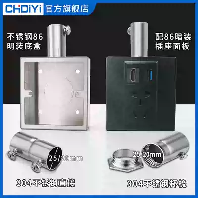 304 stainless steel 86 type open box socket panel light and dark universal wall switch base bottom junction box bottom box