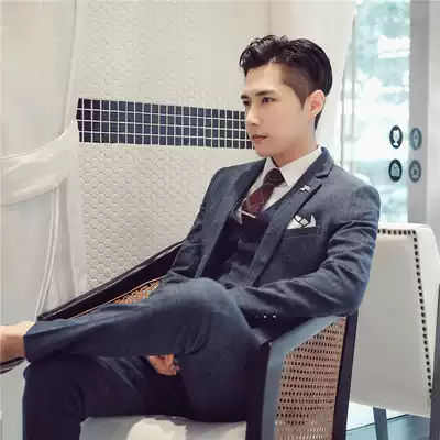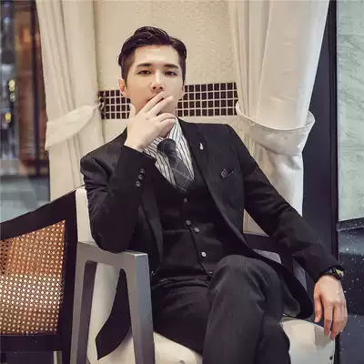 Suit suit suit men's slim Korean version of handsome groom wedding dress business dress British white suit male tide