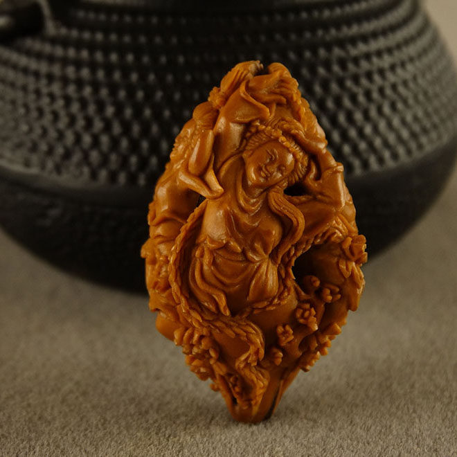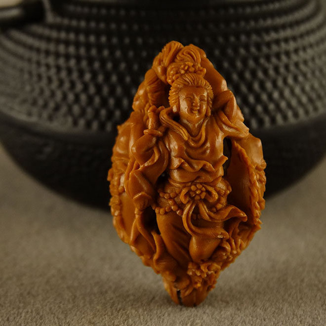 Pure hand - crafted "four beauties" Qi bamboo Zhoushan Su - craft new olive walnut sculpture paper plays old oil core