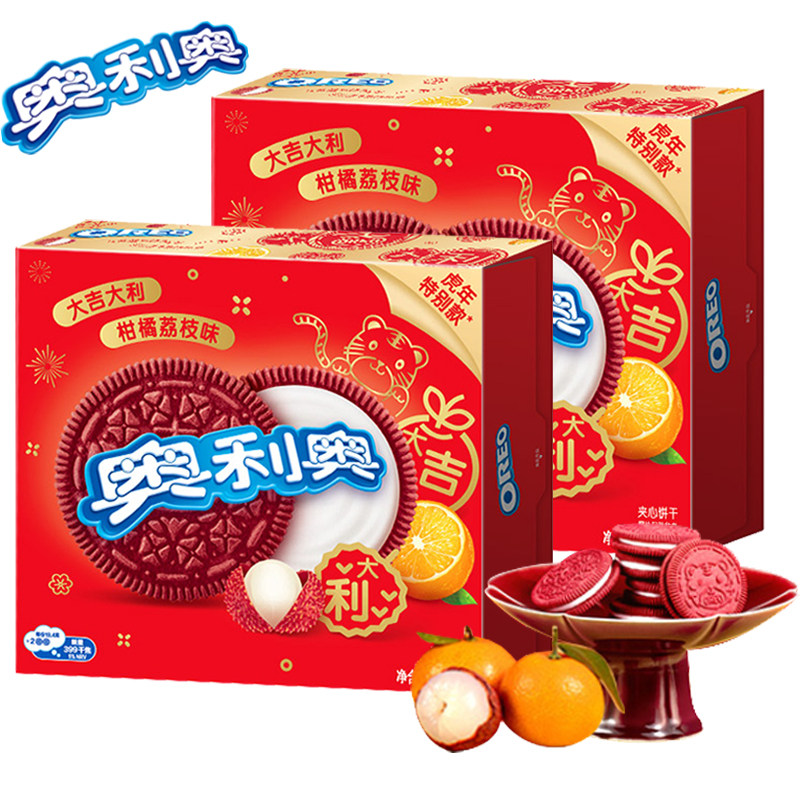 Oreo Daji Dali citrus lychee flavor Tiger Year special edition 388g sandwich small red biscuits leisure zero food