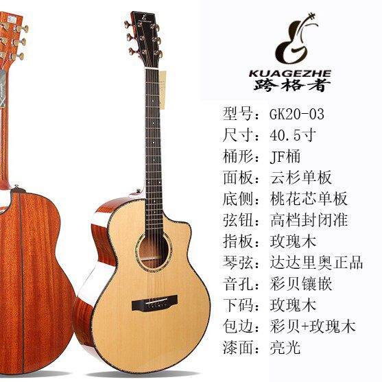 Cross grid person GK20-03 spruce mahogany full single guitar 40 5 inches folk acoustic guitar men and women playing musical instruments