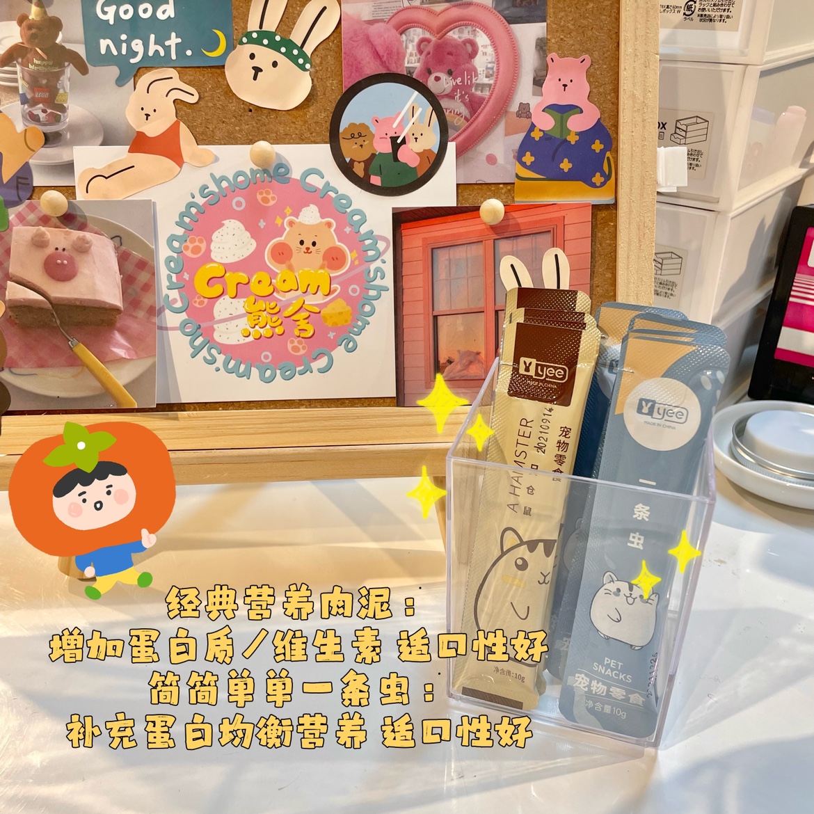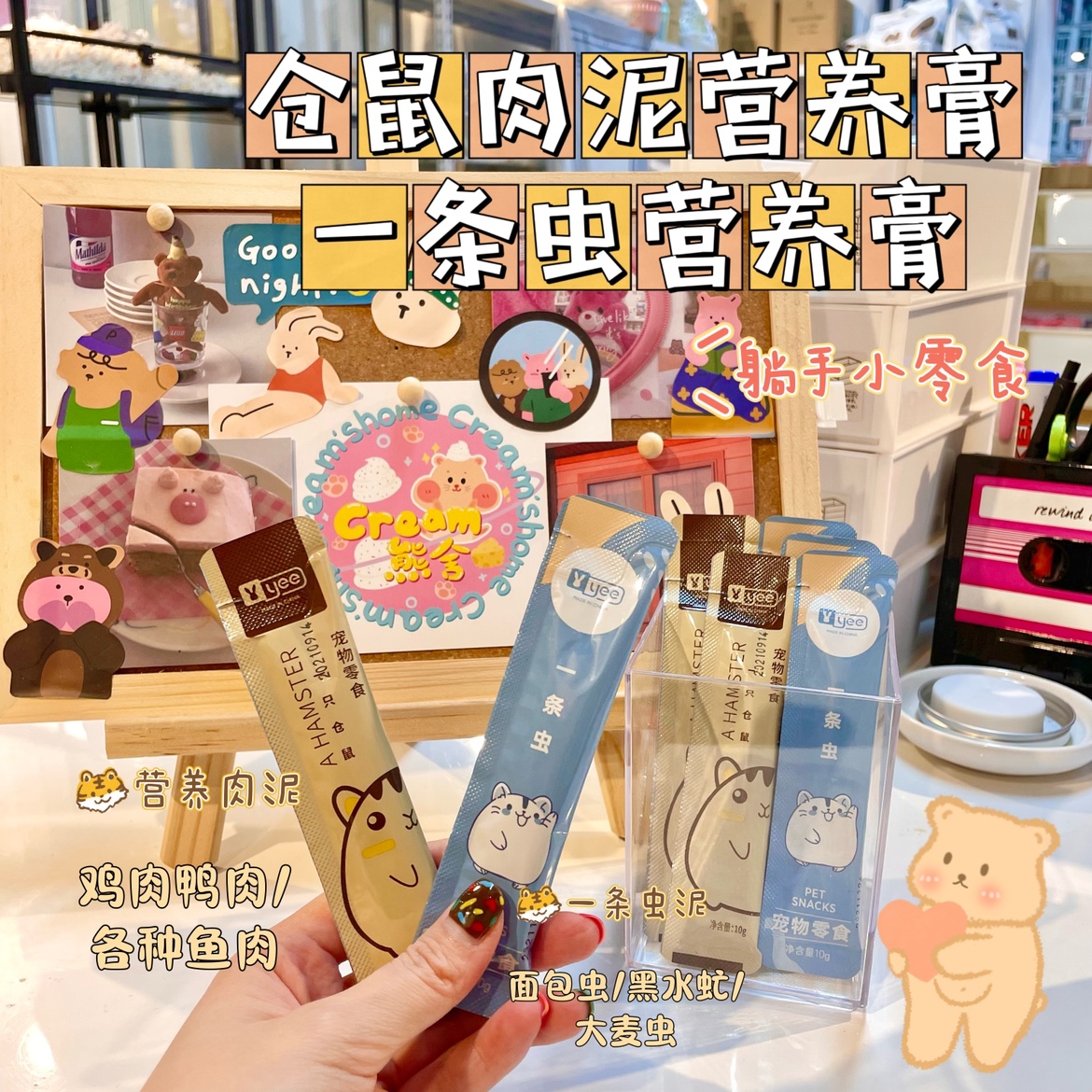 One for each of the four flavors (4 in total), one worm, one milk, one mixed meat paste, one nutrition strip, the elderly version, one worm, three milk, three nutritious meat paste, three nutrition bars