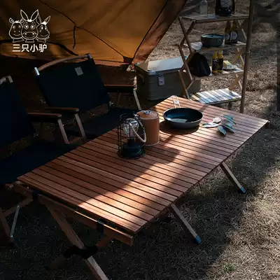 Three little donkeys outdoor portable camping egg roll table foldable solid wood small table self driving picnic table and chair