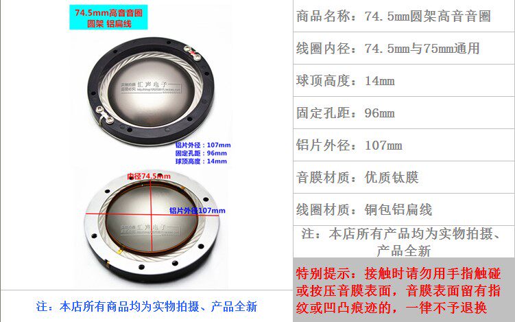 74 5mm Alt Circle Sound Film Round Frame Titanium Film Flat Wire 75 Core Alt Horn Soundring Repair Accessories