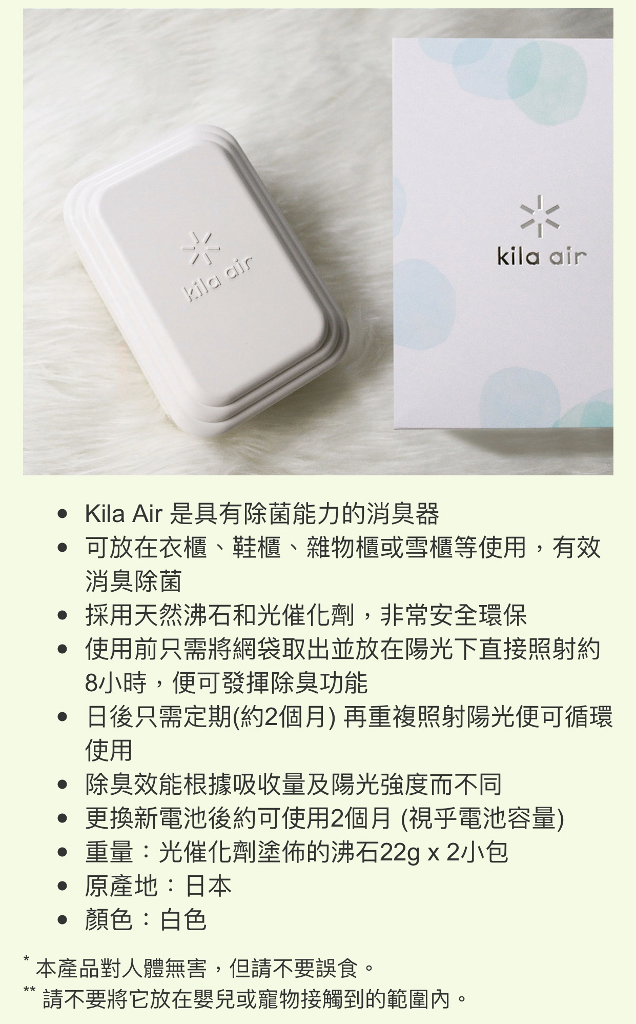 FujicioKillaAir Photo-Catalyst Remover of bacteria KA-F01 WT Wardrobe Shoe Rack Debris cabinet Ice cream Mini
