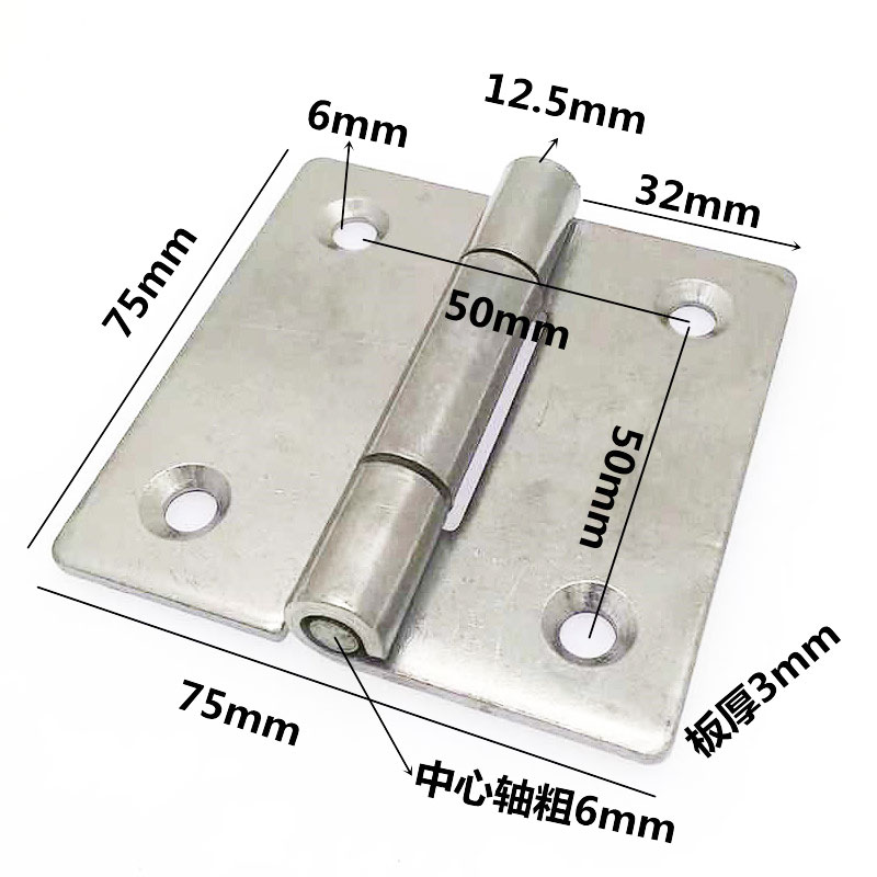 SUS304 stainless steel hinge 3-inch thickened non-porous welding equipment machinery heavy-duty hinge 75*75*3mm