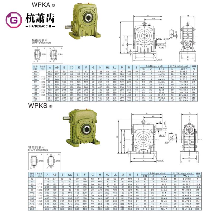 Hangxiao gear manufacturer direct selling WPKA WPKS iron shell turboworm vertical reducer speed ratio of 1:10 15 30