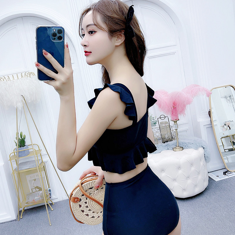 Spa swimsuit women's new two-piece small clear new wood ear edge Jean Joins wind strap triangular bikini