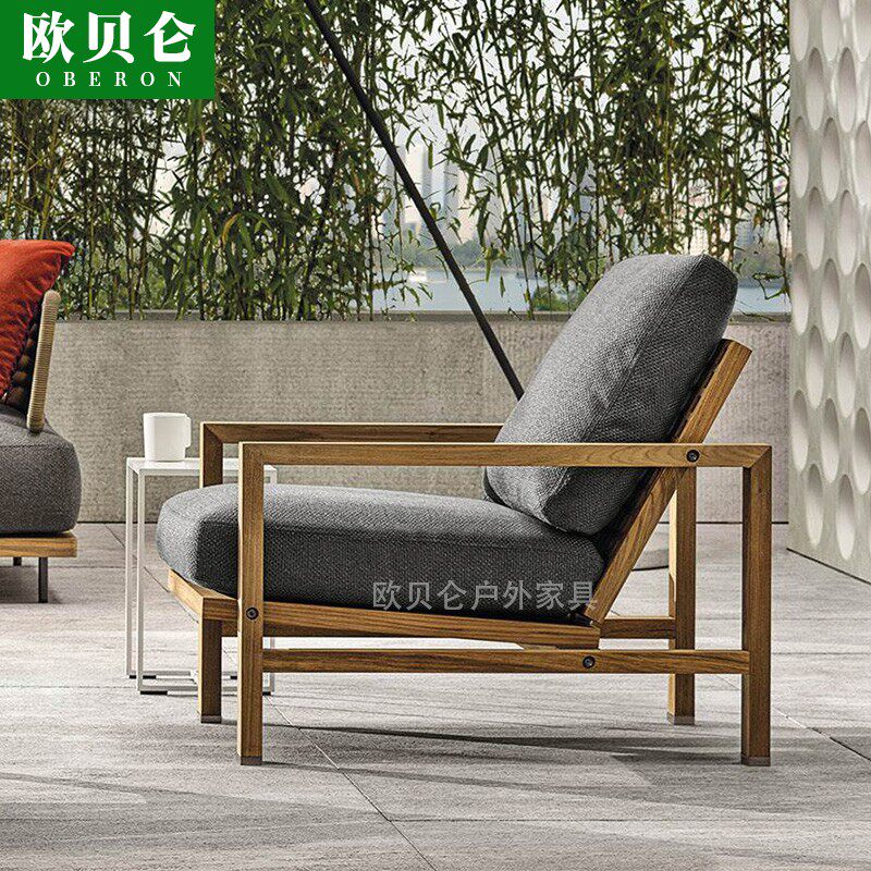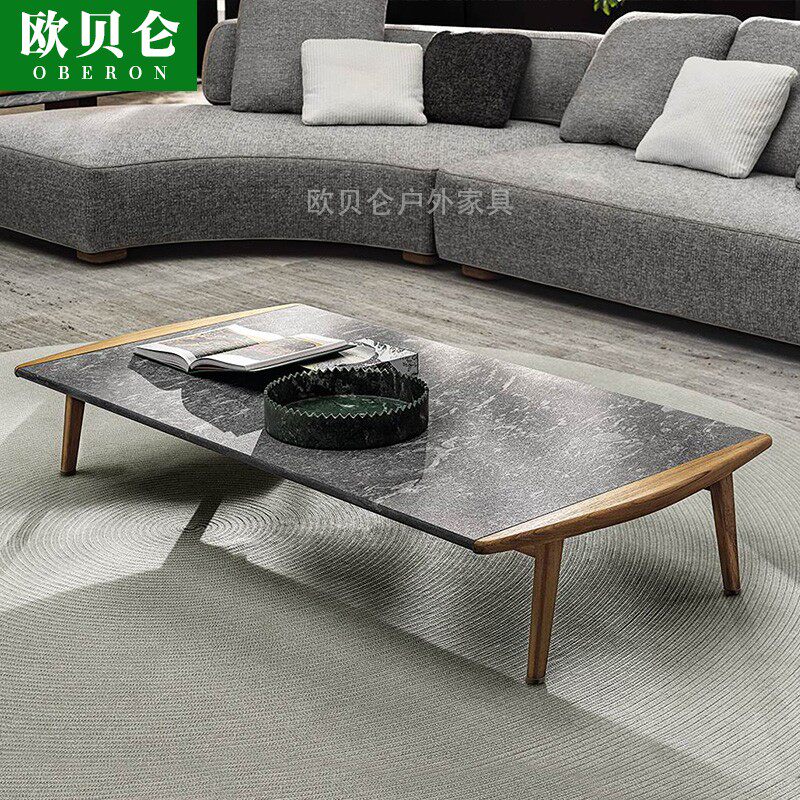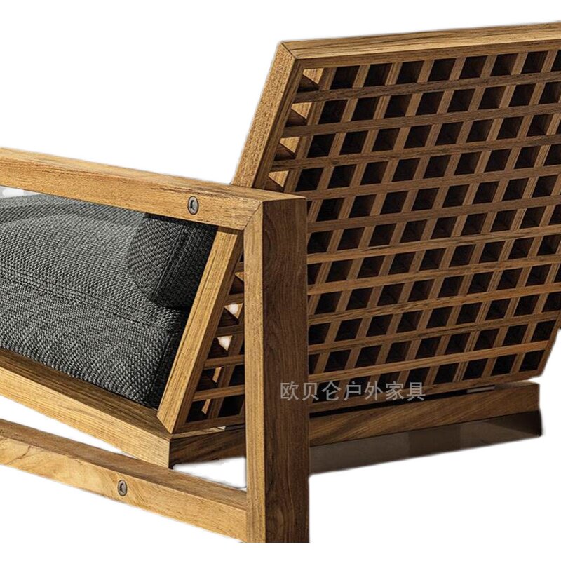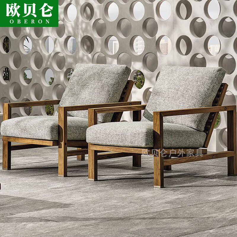 Outdoor courtyard anti-corrosion solid wood sofa designer model house villa high-end furniture coffee table outdoor rattan sofa