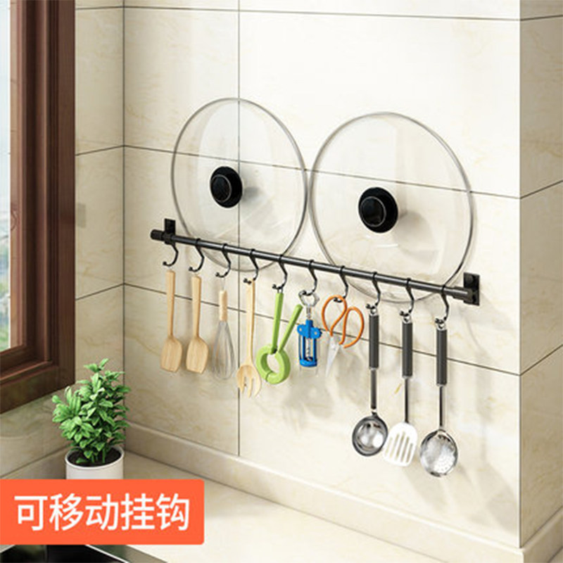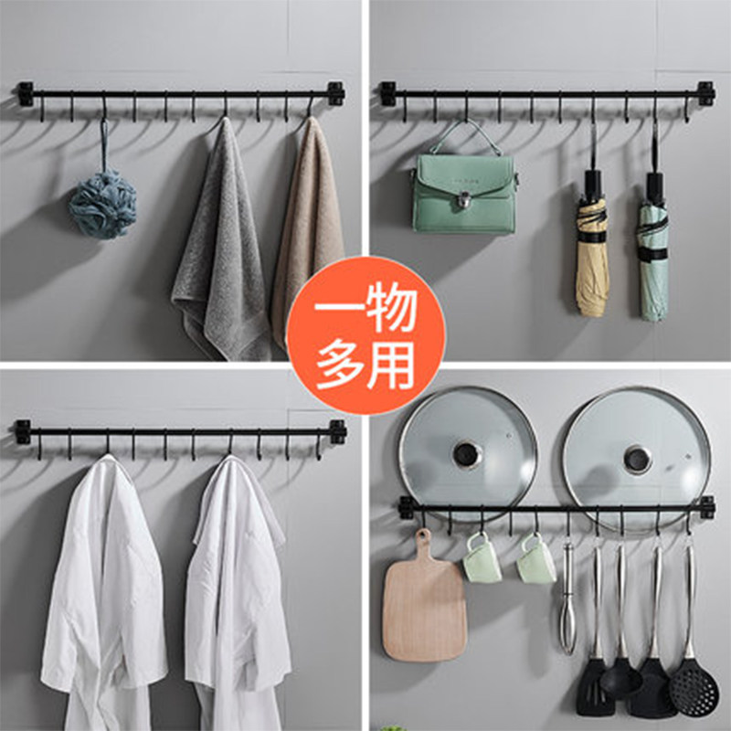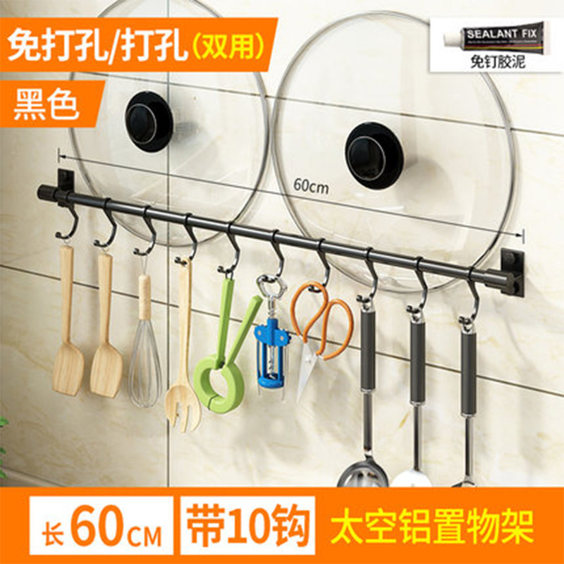 Kitchen Hook Free of perforated Black Hanging Rod Wall-mounted Kitchenware Supplies Rack Shelve Spoon Special Row Hook