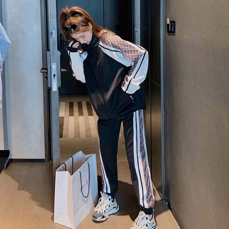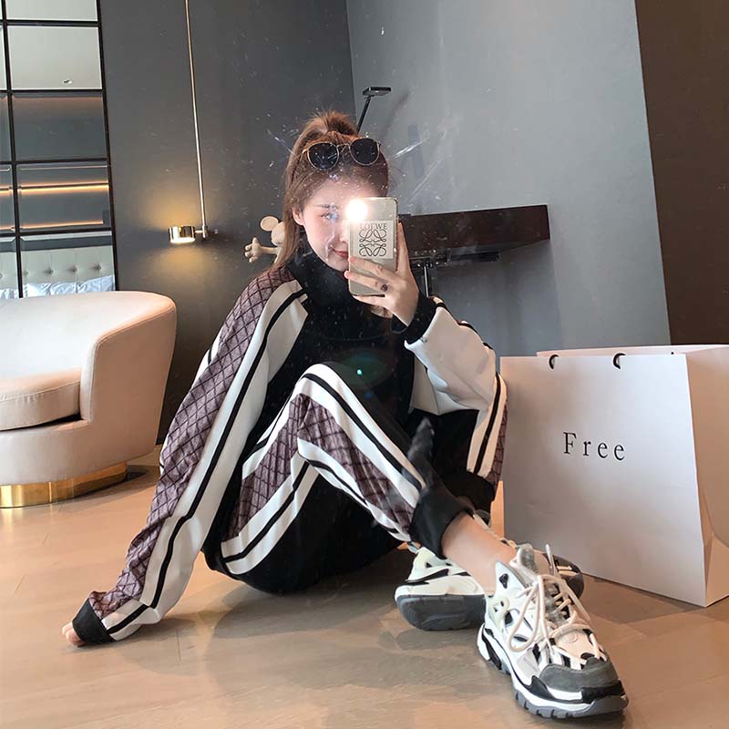 Fried street casual fashion sportswear suit 2021 new Hong Kong style retro chic Western style net red temperament two-piece suit