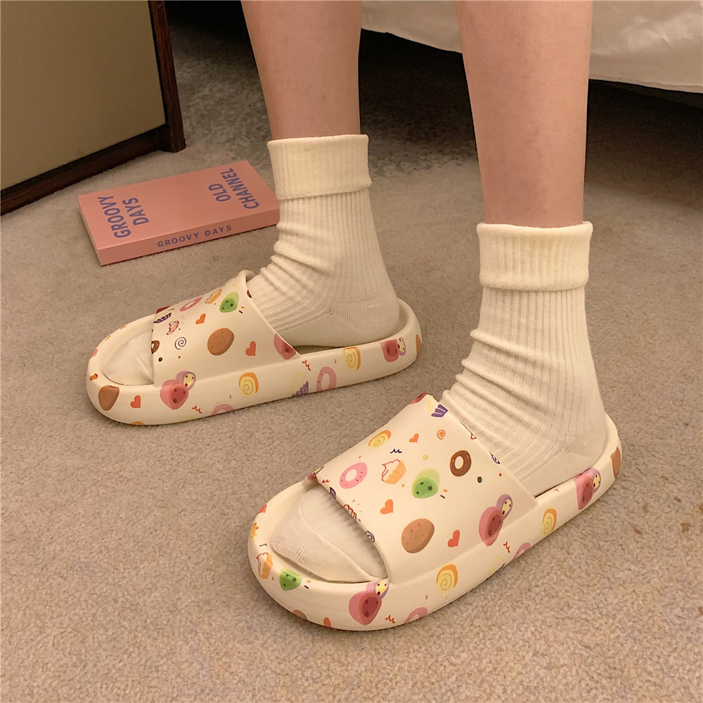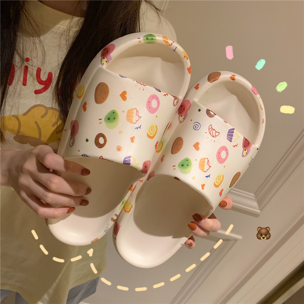 Thin strips of sandal slippers women summer outside wearing cute personality girl heart ins student non-slip thick bottom slippers EVA