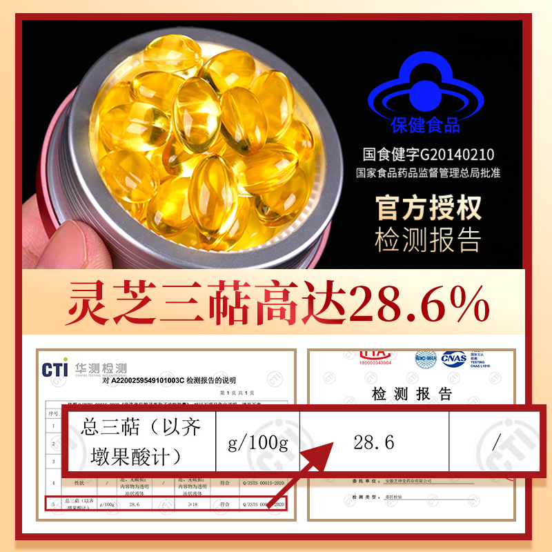 Qunantang Ganoderma Lucidum Triterpene 28 6% Changbaishan Ganoderma Lucidum Spore Oil Softgels Immunity for the elderly 90 softgels