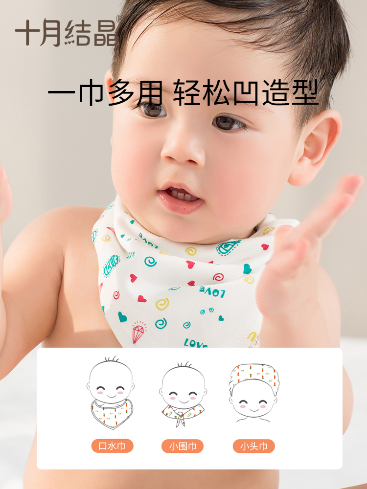 October crystalline baby pure cotton triangle mouth towel baby autumn and winter breathable round Halama towel round 4 bars