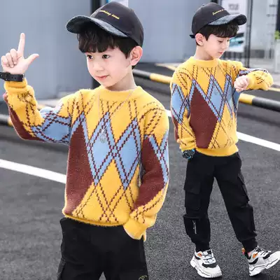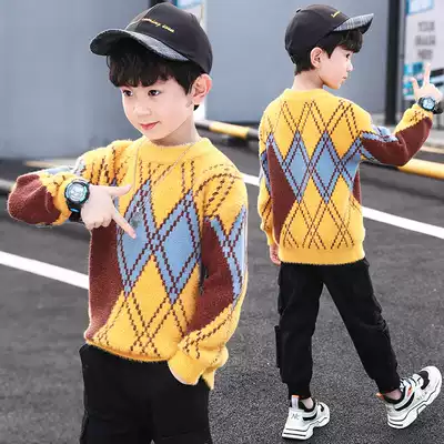 Boys' sweater autumn winter clothing 2021 New knitted base shirt plus velvet thick boy handsome mink velvet children's suit