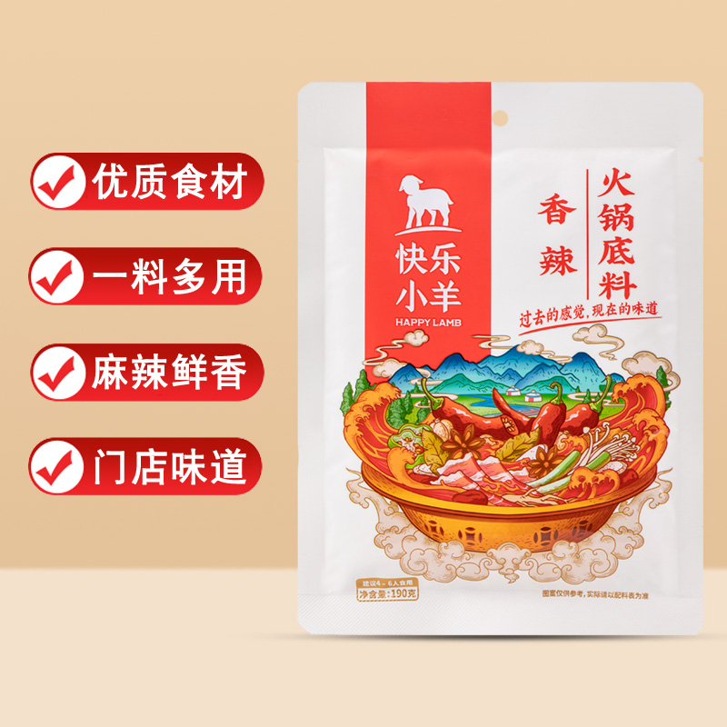 Happy lamb hot pot base spicy 190g * 5 bags combination hot pot material shabu-shabu meat seasoning Household commercial combination