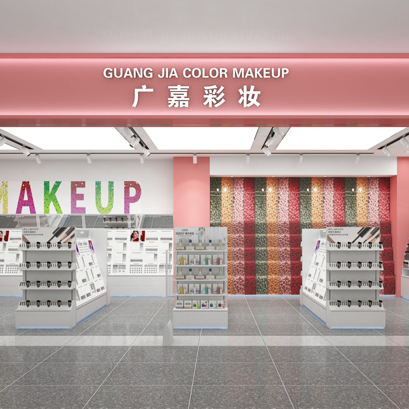 Color Makeup Side Cabinet Single Sided Step High Cabinet Skincare Laminate High Cabinet Double Sided Color Makeup Middle Island Cabinet Double Sided Laminate Color Makeup Medium Island End Head A Middle Island End Head B Beauty Makeup Egg Rainbow Wall Cashier Counter Whole Store Customize