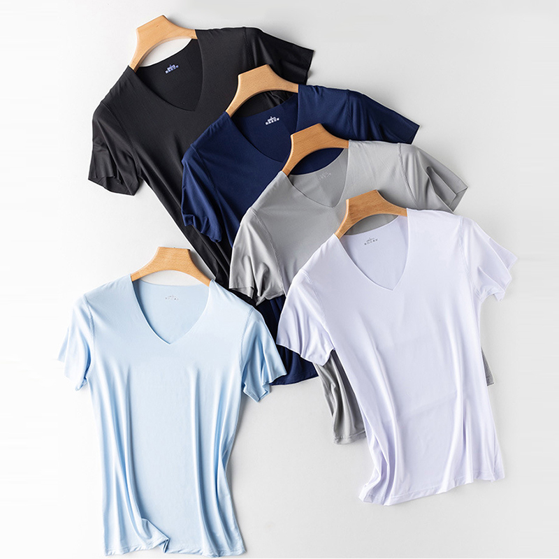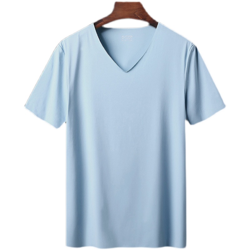 Cool And No Marks Men Ice Silk V Collar T-shirt Ultra Slim Fit Mid Youth Sports Home Short Sleeve Underwear Beating Bottom Sweatshirt-Taobao