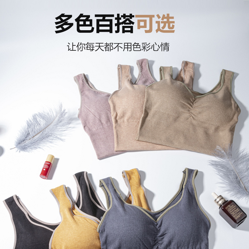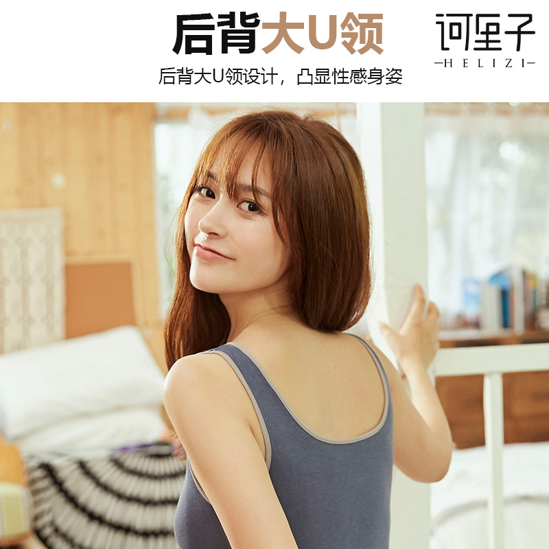 One-piece free bra with chest pad base spring and autumn vest suspender Contrast cotton slim fit tight wild sexy V-neck