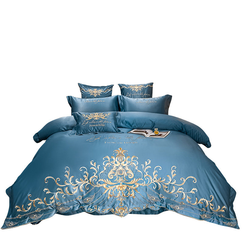 High-end light and luxurious cotton four pieces style 100 whole cotton embroidered silk quilt cover sheet European-style bed with supplies 1 8 bed hat