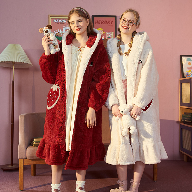 Tanglion Sleeping Pants Female Berries Bothered Coral Suede Long Sleeves Thickened 2020 Autumn winter sleeping robe outside the home Suits Suit