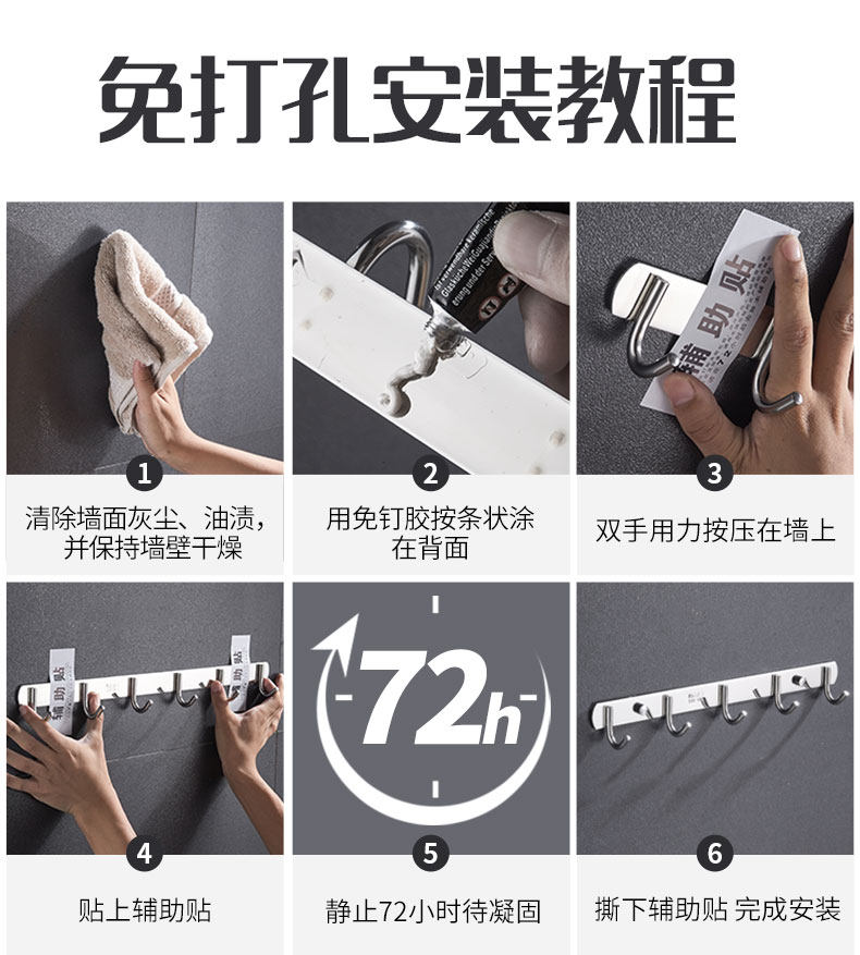 Strong nail-free glue-free glue for household glass tile frame hook sticky wall fixed waterproof structure adhesive
