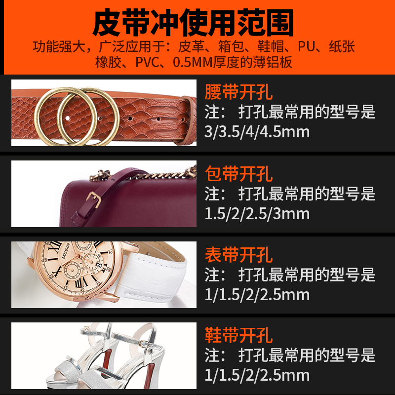 Belt punch 0 5mm Belt Punch 0 8mm Belt punch 1 0mm Belt punch 1 5mm Belt punch 1 8mm Belt punch 2 0mm Belt Punch 2 5mm Belt Punch 3