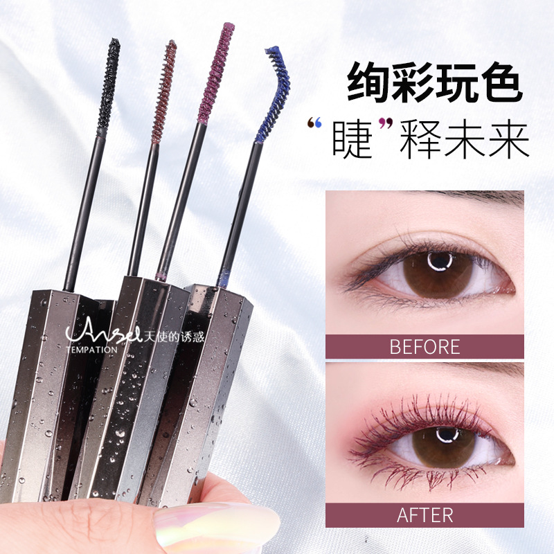 Color mascara is slender, waterproof, long-lasting, not easy to smudge, not agglomerated, natural very fine brush head, bottoming and curling